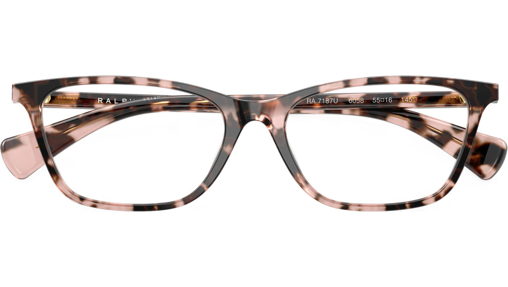Occhiali da vista Ralph RA7187U 6058 con montatura rettangolare in acetato rosa avana lucido e lenti demo. Fit universale. Linea: Essential. Codice modello: 0RA7187U. Codice colore: 6058. Rivenditore autorizzato Ralph online. Gli occhiali vengono consegnati con custodia e accessori originali e sono coperti dalla garanzia ufficiale di 12 mesi del produttore.