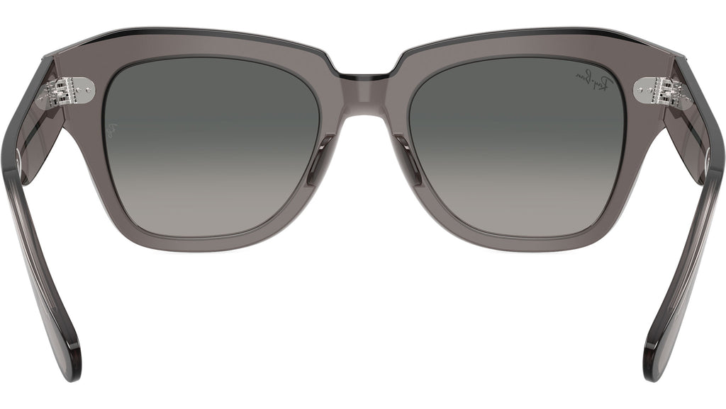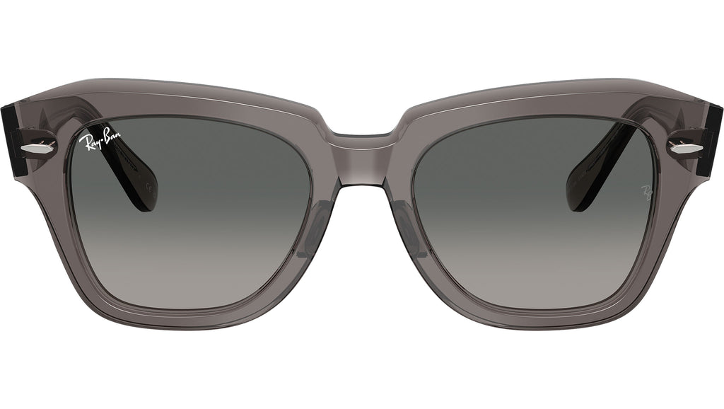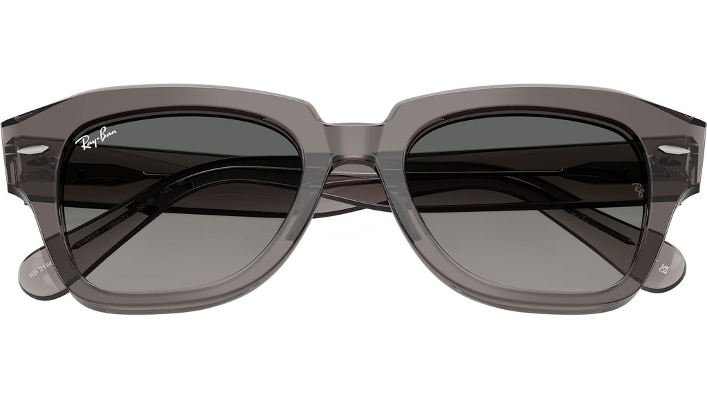 Occhiali da sole Ray-Ban State Street RB2186 136971 unisex con montatura squadrata in acetato grigio trasparente e lenti in cristallo color grigio sfumato. Vestibilità a ponte alto. Linea: Evolution. Codice modello: 0RB2186. Codice colore: 136971. Rivenditore autorizzato Ray-Ban online. Gli occhiali vengono consegnati con custodia e accessori originali e sono coperti dalla garanzia ufficiale di 12 mesi del produttore.