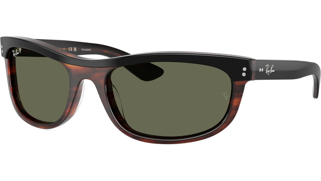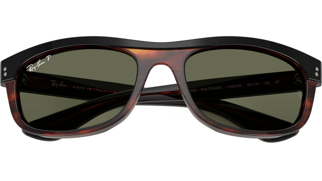 Occhiali da sole Ray-Ban Balorama RB2489 144058 unisex con montatura rettangolare in acetato nero su avana e lenti in cristallo color verde polarizzato. Vestibilità a ponte alto. Linea: Evolution. Codice modello: 0RB2489. Codice colore: 144058. Rivenditore autorizzato Ray-Ban online. Gli occhiali vengono consegnati con custodia e accessori originali e sono coperti dalla garanzia ufficiale di 12 mesi del produttore.