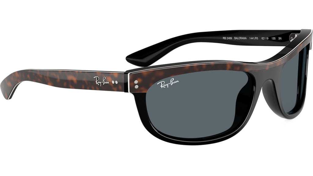 Occhiali da sole Ray-Ban Balorama RB2489 1441R5 unisex con montatura rettangolare in acetato avana su nero e lenti in cristallo color blu. Vestibilità a ponte alto. Linea: Evolution. Codice modello: 0RB2489. Codice colore: 1441R5. Rivenditore autorizzato Ray-Ban online. Gli occhiali vengono consegnati con custodia e accessori originali e sono coperti dalla garanzia ufficiale di 12 mesi del produttore.