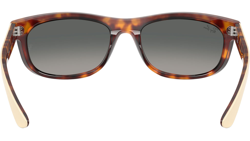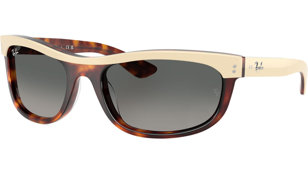 Occhiali da sole Ray-Ban Balorama RB2489 144371 unisex con montatura rettangolare in acetato beige avana e lenti in cristallo color grigio sfumato. Vestibilità a ponte alto. Linea: Evolution. Codice modello: 0RB2489. Codice colore: 144371. Rivenditore autorizzato Ray-Ban online. Gli occhiali vengono consegnati con custodia e accessori originali e sono coperti dalla garanzia ufficiale di 12 mesi del produttore.