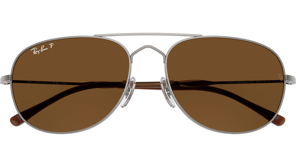 Occhiali da sole Ray-Ban Bain Bridge RB3735 004/57 unisex con montatura aviatore in metallo canna di fucile e lenti in cristallo color marrone polarizzato. Naselli regolabili. Linea: Evolution. Codice modello: 0RB3735. Codice colore: 004/57. Rivenditore autorizzato Ray-Ban online. Gli occhiali vengono consegnati con custodia e accessori originali e sono coperti dalla garanzia ufficiale di 12 mesi del produttore.