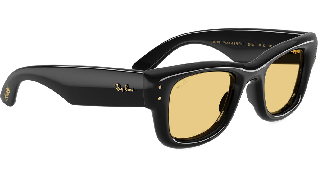 Occhiali da sole Ray-Ban Wayfarer Puffer RB4940 601/85 unisex con montatura squadrata in nylon nero e lenti in bio poliammide color giallo. Vestibilità a ponte alto. Linea: Evolution. Codice modello: 0RB4940. Codice colore: 601/85. Rivenditore autorizzato Ray-Ban online. Gli occhiali vengono consegnati con custodia e accessori originali e sono coperti dalla garanzia ufficiale di 12 mesi del produttore.