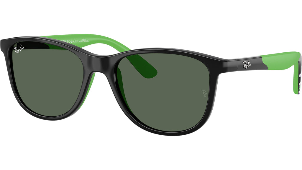 Occhiali da sole Ray-Ban Junior RJ9077S 719371 unisex con montatura squadrata in iniettato nero & gomma verde e lenti in bio poliammide color verde scuro. Vestibilità a ponte alto. Linea: Kids Innovation. Codice modello: 0RJ9077S. Codice colore: 719371. Rivenditore autorizzato Ray-Ban online. Gli occhiali vengono consegnati con custodia e accessori originali e sono coperti dalla garanzia ufficiale di 12 mesi del produttore.