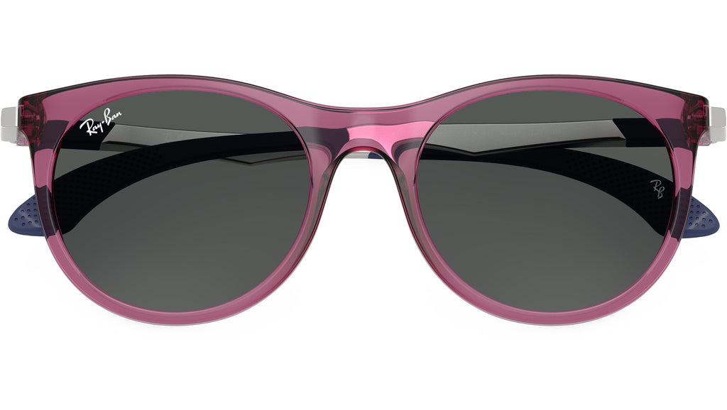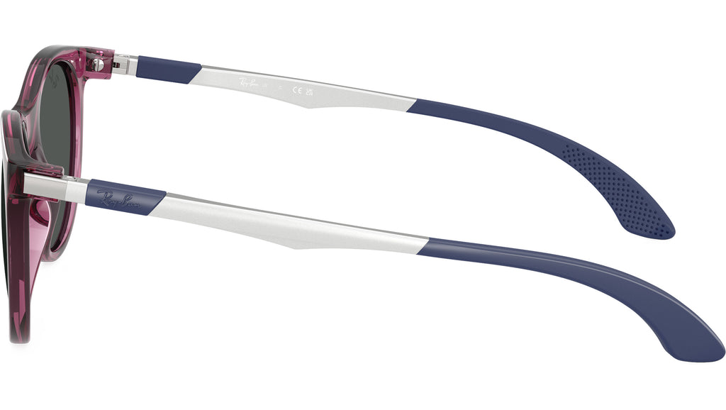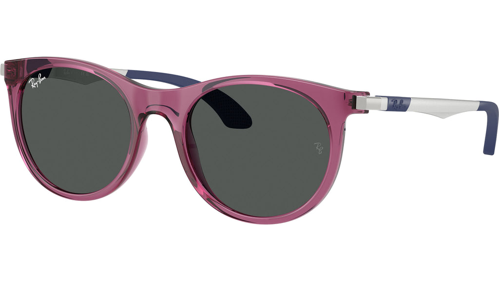 Occhiali da sole Ray-Ban Junior RJ9082S 718687 unisex con montatura pantos in nylon violet trasparente e lenti in policarbonato color grigio scuro. Vestibilità a ponte alto. Linea: Kids Innovation. Codice modello: 0RJ9082S. Codice colore: 718687. Rivenditore autorizzato Ray-Ban online. Gli occhiali vengono consegnati con custodia e accessori originali e sono coperti dalla garanzia ufficiale di 12 mesi del produttore.