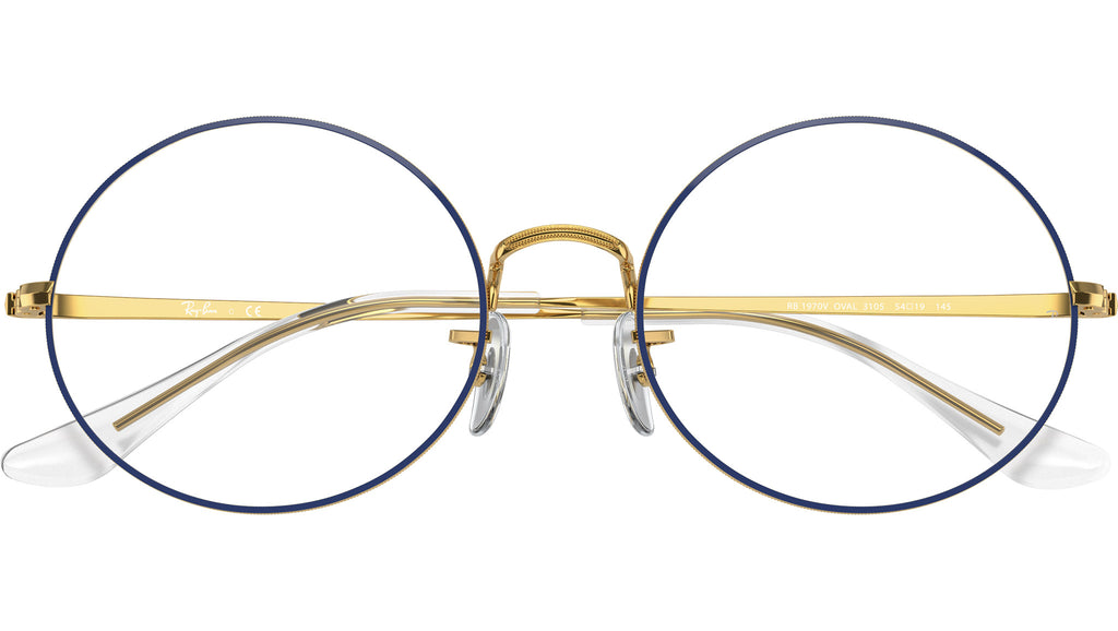 Occhiali da vista Ray-Ban Oval RB1970V 3105 unisex con montatura rettangolare in metallo blu sulla leggenda gold e lenti demo. Linea: Optics. Codice modello: 0RX1970V. Codice colore: 3105. Rivenditore autorizzato Ray-Ban online. Gli occhiali vengono consegnati con custodia e accessori originali e sono coperti dalla garanzia ufficiale di 12 mesi del produttore.