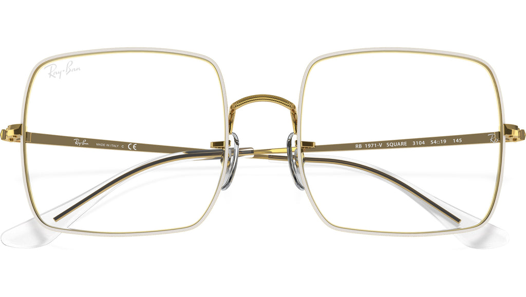 Occhiali da vista Ray-Ban Square RB1971V 3104 donna con montatura squadrata in metallo bianco su oro legend e lenti demo. Linea: Optics. Codice modello: 0RX1971V. Codice colore: 3104. Rivenditore autorizzato Ray-Ban online. Gli occhiali vengono consegnati con custodia e accessori originali e sono coperti dalla garanzia ufficiale di 12 mesi del produttore.