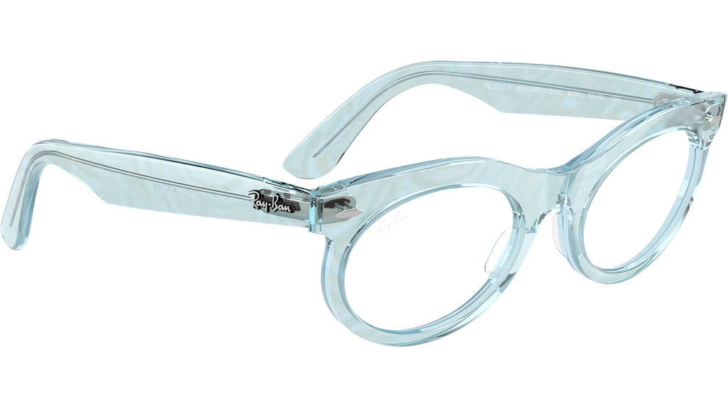 Occhiali da vista Ray-Ban Wayfarer Oval RB2242V 8293 unisex con montatura ovale in propionato stampato onde azzurro e lenti demo. Vestibilità a ponte alto. Linea: Evolution. Codice modello: 0RX2242V. Codice colore: 8293. Rivenditore autorizzato Ray-Ban online. Gli occhiali vengono consegnati con custodia e accessori originali e sono coperti dalla garanzia ufficiale di 12 mesi del produttore.
