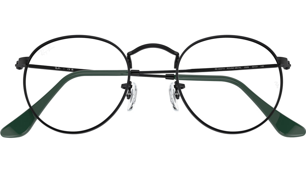 Occhiali da vista Ray-Ban Round Metal RB3447V 2509 unisex con montatura rotonda in metallo nero e lenti demo. Naselli regolabili. Linea: Legacy. Codice modello: 0RX3447V. Codice colore: 2509. Rivenditore autorizzato Ray-Ban online. Gli occhiali vengono consegnati con custodia e accessori originali e sono coperti dalla garanzia ufficiale di 12 mesi del produttore.