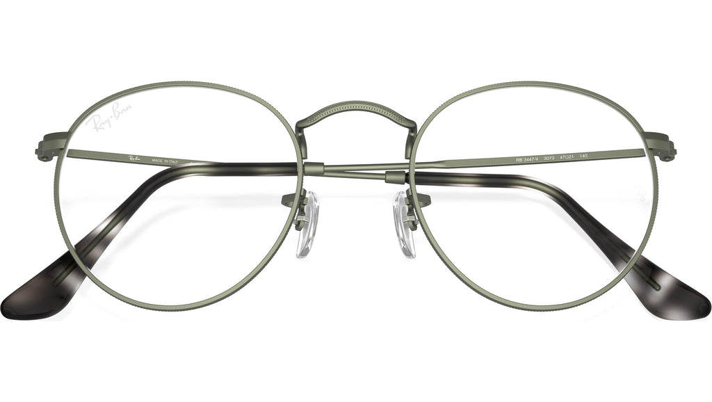 Occhiali da vista Ray-Ban Round Metal RB3447V 3073 unisex con montatura rotonda in metallo verde sand trasparente e lenti demo. Linea: Icons. Codice modello: 0RX3447V. Codice colore: 3073. Rivenditore autorizzato Ray-Ban online. Gli occhiali vengono consegnati con custodia e accessori originali e sono coperti dalla garanzia ufficiale di 12 mesi del produttore.