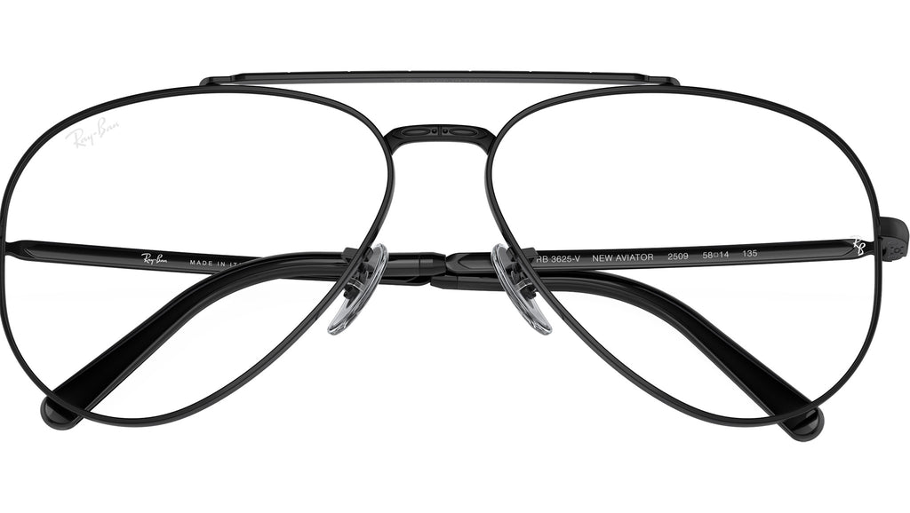 Occhiali da vista Ray-Ban New Aviator RB3625V 2509 unisex con montatura aviatore in metallo nero e lenti demo. Linea: Optics. Codice modello: 0RX3625V. Codice colore: 2509. Rivenditore autorizzato Ray-Ban online. Gli occhiali vengono consegnati con custodia e accessori originali e sono coperti dalla garanzia ufficiale di 12 mesi del produttore.