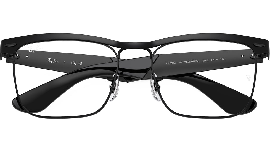 Occhiali da vista Ray-Ban Wayfarer Deluxe RB3875V 2503 unisex con montatura squadrata in metallo nero opaco e lenti demo. Naselli regolabili. Linea: Evolution. Codice modello: 0RX3875V. Codice colore: 2503. Rivenditore autorizzato Ray-Ban online. Gli occhiali vengono consegnati con custodia e accessori originali e sono coperti dalla garanzia ufficiale di 12 mesi del produttore.