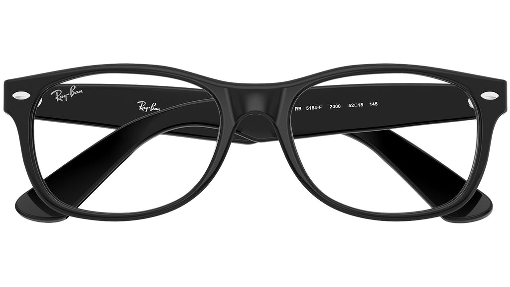 Occhiali da vista Ray-Ban New Wayfarer RB5184F 2000 unisex con montatura squadrata in acetato nero e lenti demo. Vestibilità a ponte basso. Linea: Evolution. Codice modello: 0RX5184F. Codice colore: 2000. Rivenditore autorizzato Ray-Ban online. Gli occhiali vengono consegnati con custodia e accessori originali e sono coperti dalla garanzia ufficiale di 12 mesi del produttore.
