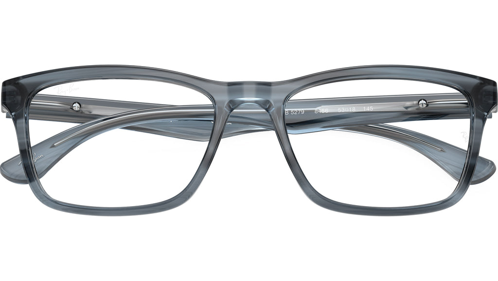 Occhiali da vista Ray-Ban RB5279 Optics RB5279 8456 unisex con montatura squadrata in acetato blu striato e lenti demo. Vestibilità a ponte alto. Linea: Essentials. Codice modello: 0RX5279. Codice colore: 8456. Rivenditore autorizzato Ray-Ban online. Gli occhiali vengono consegnati con custodia e accessori originali e sono coperti dalla garanzia ufficiale di 12 mesi del produttore.