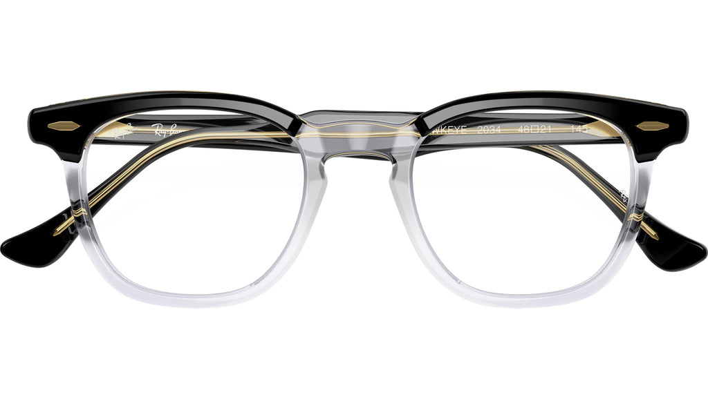 Occhiali da vista Ray-Ban Hawkeye RB5398 2034 unisex con montatura squadrata in acetato nero su trasparente e lenti demo. Vestibilità a ponte alto. Linea: Evolution. Codice modello: 0RX5398. Codice colore: 2034. Rivenditore autorizzato Ray-Ban online. Gli occhiali vengono consegnati con custodia e accessori originali e sono coperti dalla garanzia ufficiale di 12 mesi del produttore.
