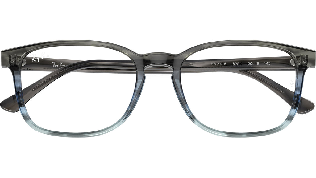 Occhiali da vista Ray-Ban RB5418 Optics RB5418 8254 unisex con montatura d-frame in acetato rigato grigio e blu e lenti demo. Vestibilità a ponte alto. Linea: Core. Codice modello: 0RX5418. Codice colore: 8254. Rivenditore autorizzato Ray-Ban online. Gli occhiali vengono consegnati con custodia e accessori originali e sono coperti dalla garanzia ufficiale di 12 mesi del produttore.