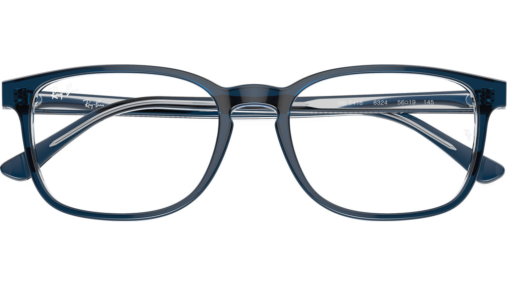 Occhiali da vista Ray-Ban RB5418 Optics RB5418 8324 unisex con montatura d-frame in acetato blu su blu trasparente e lenti demo. Vestibilità a ponte alto. Linea: Core. Codice modello: 0RX5418. Codice colore: 8324. Rivenditore autorizzato Ray-Ban online. Gli occhiali vengono consegnati con custodia e accessori originali e sono coperti dalla garanzia ufficiale di 12 mesi del produttore.