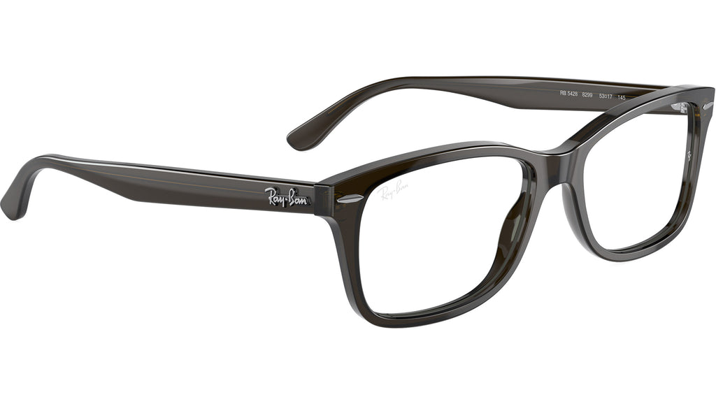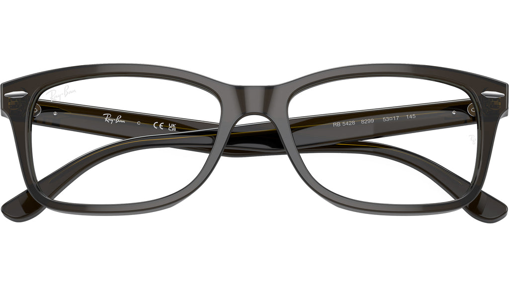Occhiali da vista Ray-Ban RB5428 Optics RB5428 8299 unisex con montatura squadrata in acetato trasparente verde oliva e lenti demo. Vestibilità a ponte alto. Linea: Core. Codice modello: 0RX5428. Codice colore: 8299. Rivenditore autorizzato Ray-Ban online. Gli occhiali vengono consegnati con custodia e accessori originali e sono coperti dalla garanzia ufficiale di 12 mesi del produttore.