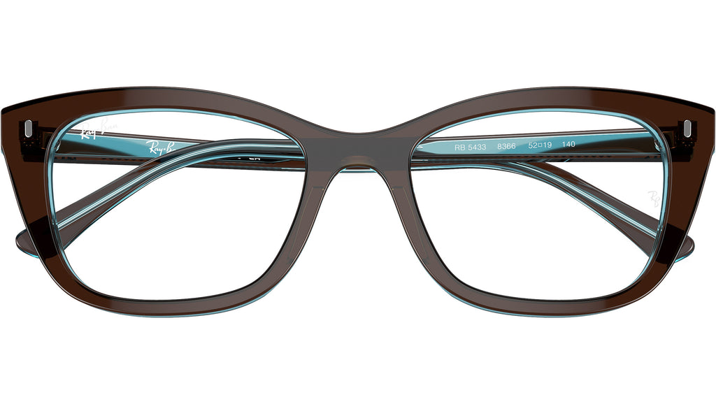 Occhiali da vista Ray-Ban RB5433 Optics RB5433 8366 unisex con montatura d-frame in acetato marrone su blu trasparente e lenti demo. Vestibilità a ponte alto. Linea: Core. Codice modello: 0RX5433. Codice colore: 8366. Rivenditore autorizzato Ray-Ban online. Gli occhiali vengono consegnati con custodia e accessori originali e sono coperti dalla garanzia ufficiale di 12 mesi del produttore.