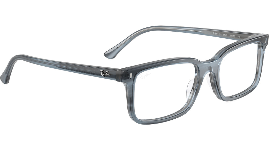 Occhiali da vista Ray-Ban RB5445 Optics RB5445 8456 unisex con montatura squadrata in acetato blu striato e lenti demo. Vestibilità a ponte alto. Linea: Essentials. Codice modello: 0RX5445. Codice colore: 8456. Rivenditore autorizzato Ray-Ban online. Gli occhiali vengono consegnati con custodia e accessori originali e sono coperti dalla garanzia ufficiale di 12 mesi del produttore.