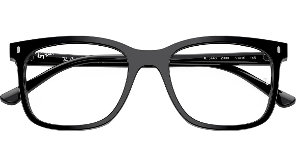 Occhiali da vista Ray-Ban RB5446 Optics RB5446 2000 unisex con montatura squadrata in acetato nero e lenti demo. Vestibilità a ponte alto. Linea: Essentials. Codice modello: 0RX5446. Codice colore: 2000. Rivenditore autorizzato Ray-Ban online. Gli occhiali vengono consegnati con custodia e accessori originali e sono coperti dalla garanzia ufficiale di 12 mesi del produttore.