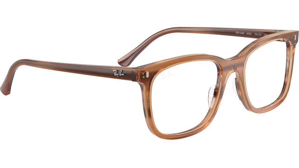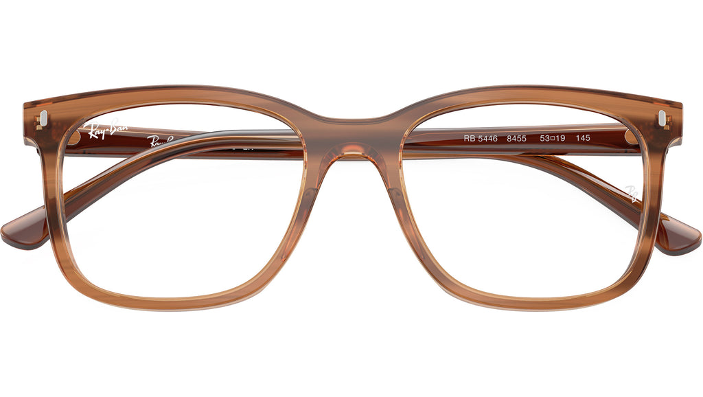 Occhiali da vista Ray-Ban RB5446 Optics RB5446 8455 unisex con montatura squadrata in acetato marrone striato e lenti demo. Vestibilità a ponte alto. Linea: Essentials. Codice modello: 0RX5446. Codice colore: 8455. Rivenditore autorizzato Ray-Ban online. Gli occhiali vengono consegnati con custodia e accessori originali e sono coperti dalla garanzia ufficiale di 12 mesi del produttore.