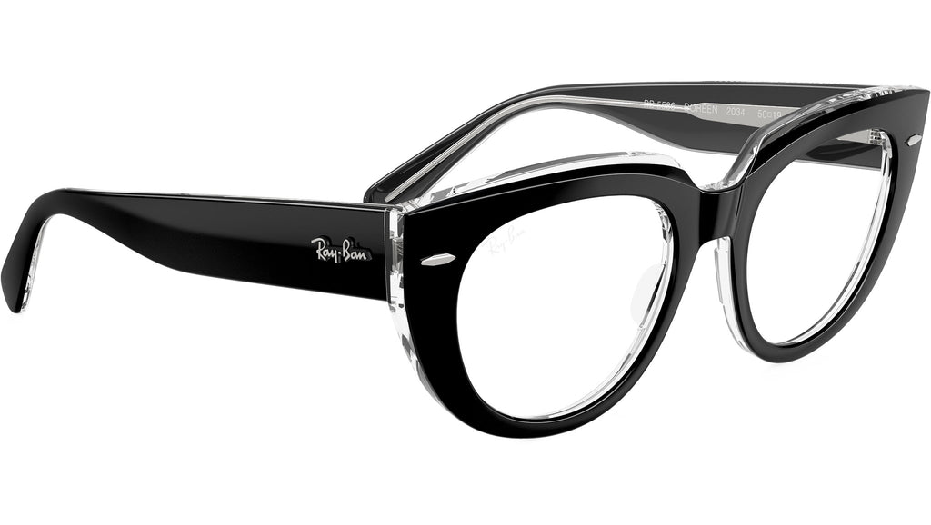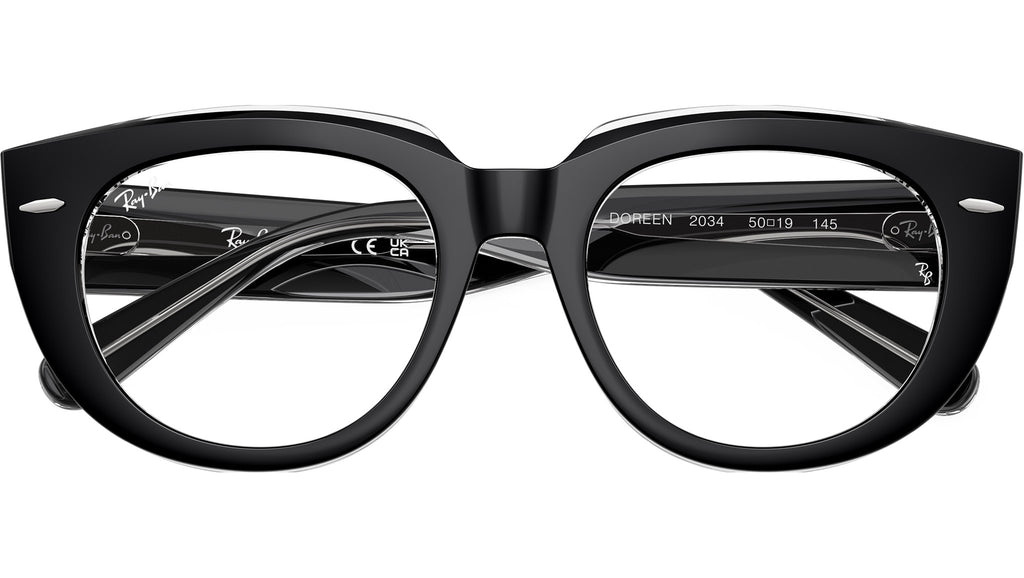 Occhiali da vista Ray-Ban Doreen RB5586 2034 donna con montatura squadrata in acetato nero su trasparente e lenti demo. Vestibilità a ponte alto. Linea: Evolution. Codice modello: 0RX5586. Codice colore: 2034. Rivenditore autorizzato Ray-Ban online. Gli occhiali vengono consegnati con custodia e accessori originali e sono coperti dalla garanzia ufficiale di 12 mesi del produttore.