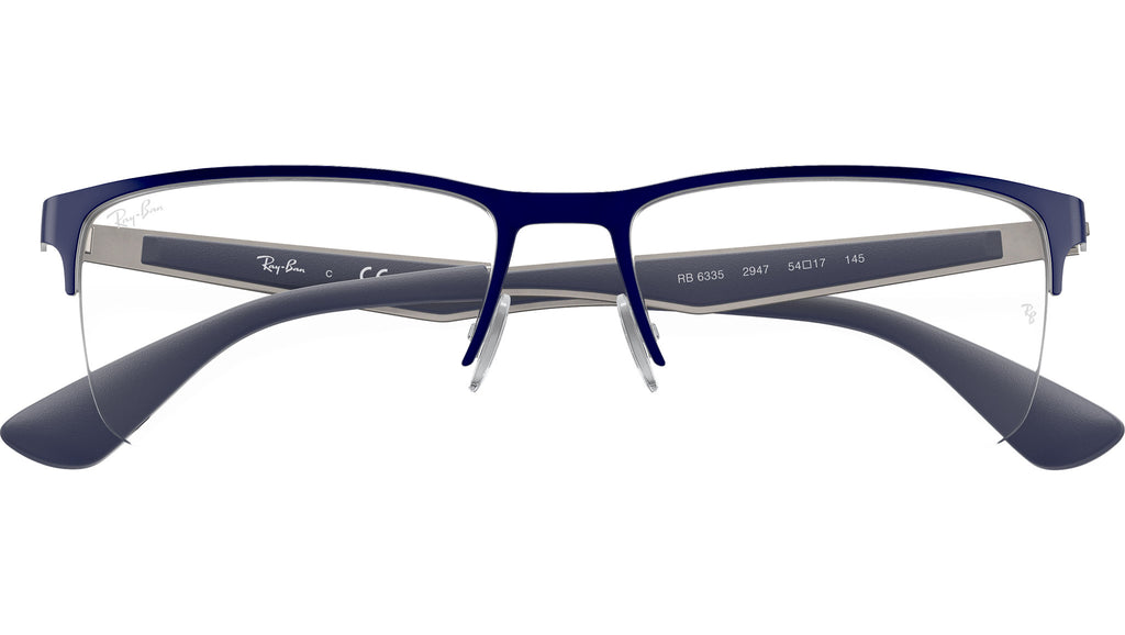 Occhiali da vista Ray-Ban RB6335 Optics RB6335 2947 unisex con montatura rettangolare in metallo blu su canna di fucile e lenti demo. Naselli regolabili. Linea: Essentials. Codice modello: 0RX6335. Codice colore: 2947. Rivenditore autorizzato Ray-Ban online. Gli occhiali vengono consegnati con custodia e accessori originali e sono coperti dalla garanzia ufficiale di 12 mesi del produttore.