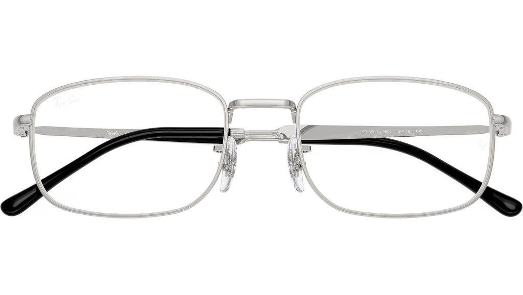 Occhiali da vista Ray-Ban RB6533 Optics RB6533 2501 unisex con montatura d-frame in metallo argento e lenti demo. Naselli regolabili. Linea: Core. Codice modello: 0RX6533. Codice colore: 2501. Rivenditore autorizzato Ray-Ban online. Gli occhiali vengono consegnati con custodia e accessori originali e sono coperti dalla garanzia ufficiale di 12 mesi del produttore.