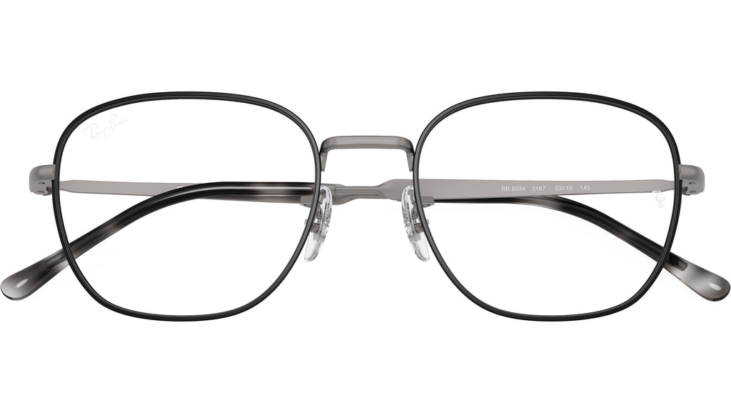 Occhiali da vista Ray-Ban RB6534 Optics RB6534 3187 unisex con montatura squadrata in metallo nero opaco su canna di fucile e lenti demo. Naselli regolabili. Linea: Core. Codice modello: 0RX6534. Codice colore: 3187. Rivenditore autorizzato Ray-Ban online. Gli occhiali vengono consegnati con custodia e accessori originali e sono coperti dalla garanzia ufficiale di 12 mesi del produttore.