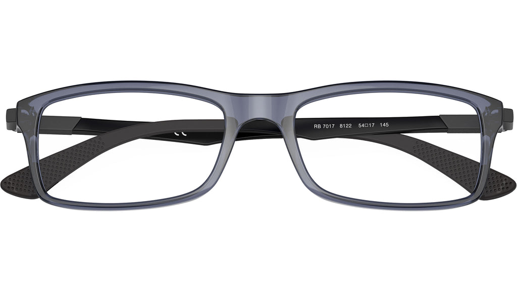Occhiali da vista Ray-Ban RB7017 Optics RB7017 8122 unisex con montatura rettangolare in acetato blu trasparente e lenti demo. Vestibilità a ponte alto. Linea: Essentials. Codice modello: 0RX7017. Codice colore: 8122. Rivenditore autorizzato Ray-Ban online. Gli occhiali vengono consegnati con custodia e accessori originali e sono coperti dalla garanzia ufficiale di 12 mesi del produttore.