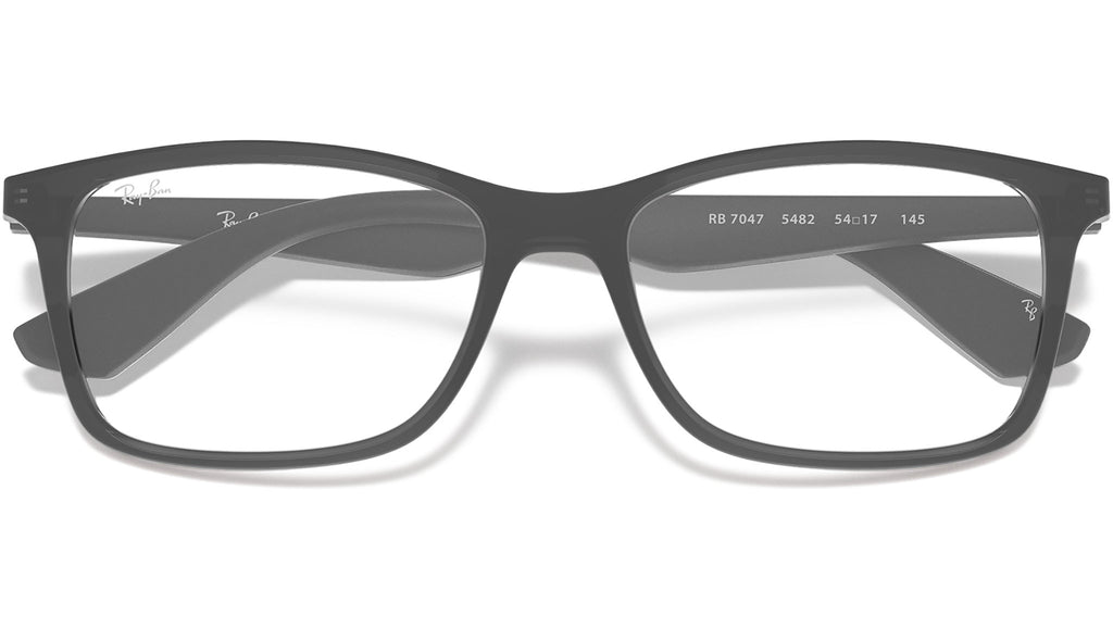 Occhiali da vista Ray-Ban RB7047 Optics RB7047 5482 unisex con montatura squadrata in acetato opaco trasparente grigio e lenti demo. Vestibilità a ponte alto. Linea: Essentials. Codice modello: 0RX7047. Codice colore: 5482. Rivenditore autorizzato Ray-Ban online. Gli occhiali vengono consegnati con custodia e accessori originali e sono coperti dalla garanzia ufficiale di 12 mesi del produttore.
