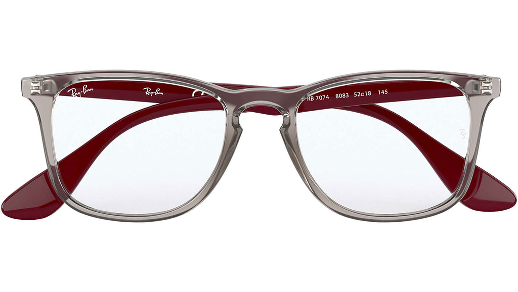 Occhiali da vista Ray-Ban RB7074 Optics RB7074 8083 unisex con montatura squadrata in acetato grigio trasparente e lenti demo. Linea: Youngster. Codice modello: 0RX7074. Codice colore: 8083. Rivenditore autorizzato Ray-Ban online. Gli occhiali vengono consegnati con custodia e accessori originali e sono coperti dalla garanzia ufficiale di 12 mesi del produttore.