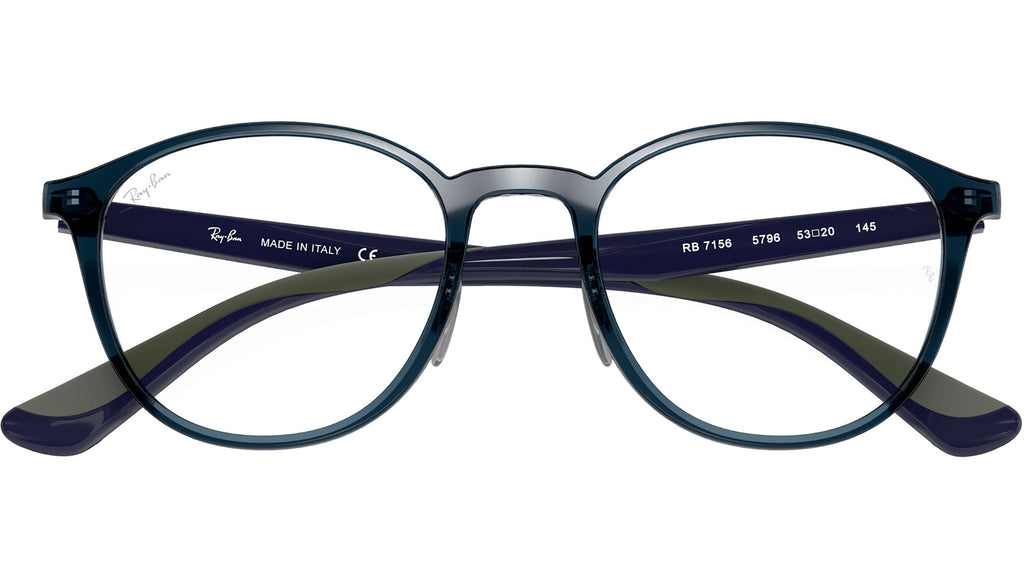 Occhiali da vista Ray-Ban RB7156 Optics RB7156 5796 unisex con montatura pantos in acetato blu scuro trasparente e lenti demo. Linea: Optics. Codice modello: 0RX7156. Codice colore: 5796. Rivenditore autorizzato Ray-Ban online. Gli occhiali vengono consegnati con custodia e accessori originali e sono coperti dalla garanzia ufficiale di 12 mesi del produttore.