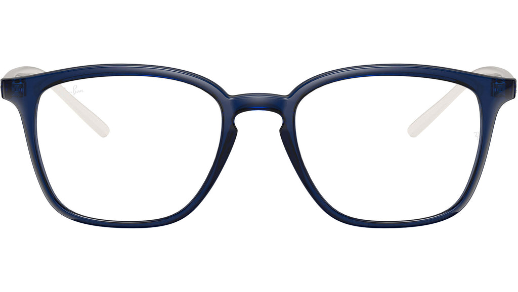 Occhiali da vista Ray-Ban RB7185 Optics RB7185 8084 unisex con montatura squadrata in acetato blu trasparente e lenti demo. Linea: Optics. Codice modello: 0RX7185. Codice colore: 8084. Rivenditore autorizzato Ray-Ban online. Gli occhiali vengono consegnati con custodia e accessori originali e sono coperti dalla garanzia ufficiale di 12 mesi del produttore.