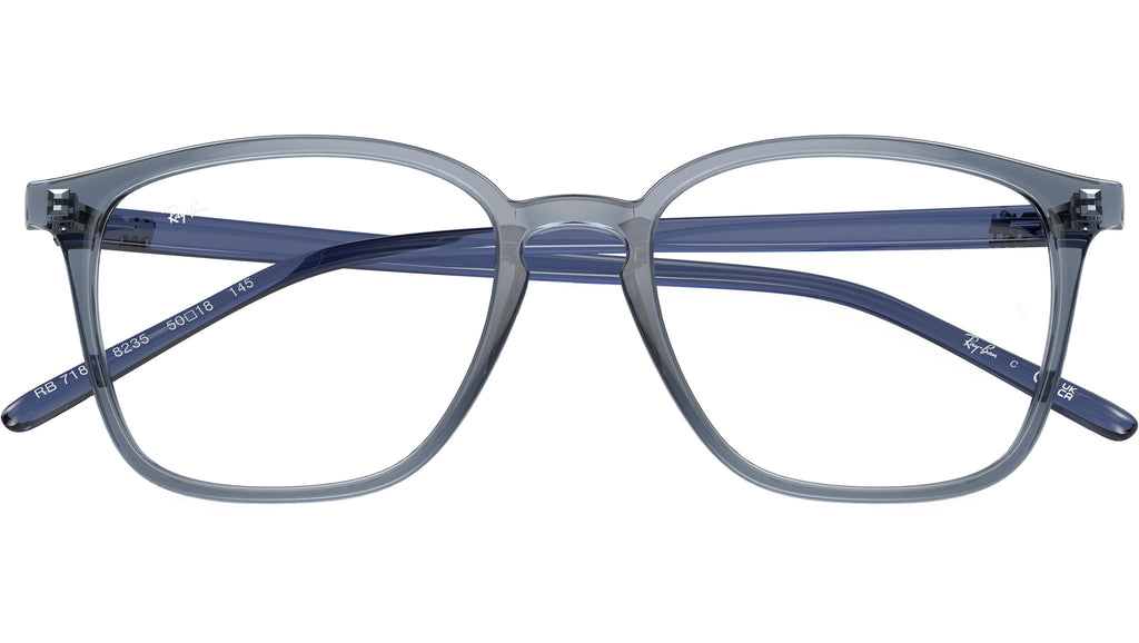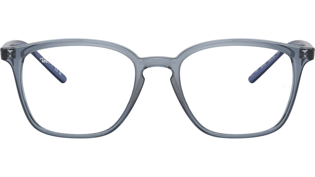 Occhiali da vista Ray-Ban RB7185 Optics RB7185 8235 unisex con montatura squadrata in iniettato blu scuro trasparente e lenti demo. Vestibilità a ponte alto. Linea: Essentials. Codice modello: 0RX7185. Codice colore: 8235. Rivenditore autorizzato Ray-Ban online. Gli occhiali vengono consegnati con custodia e accessori originali e sono coperti dalla garanzia ufficiale di 12 mesi del produttore.
