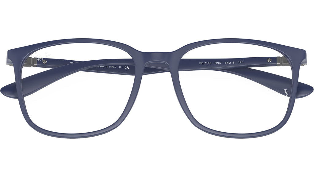 Occhiali da vista Ray-Ban RB7199 Optics RB7199 5207 unisex con montatura squadrata in acetato blu sabbiato e lenti demo. Vestibilità a ponte alto. Linea: Performance. Codice modello: 0RX7199. Codice colore: 5207. Rivenditore autorizzato Ray-Ban online. Gli occhiali vengono consegnati con custodia e accessori originali e sono coperti dalla garanzia ufficiale di 12 mesi del produttore.