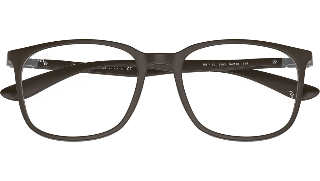 Occhiali da vista Ray-Ban RB7199 Optics RB7199 8063 unisex con montatura squadrata in acetato marrone sabbiato e lenti demo. Vestibilità a ponte alto. Linea: Performance. Codice modello: 0RX7199. Codice colore: 8063. Rivenditore autorizzato Ray-Ban online. Gli occhiali vengono consegnati con custodia e accessori originali e sono coperti dalla garanzia ufficiale di 12 mesi del produttore.