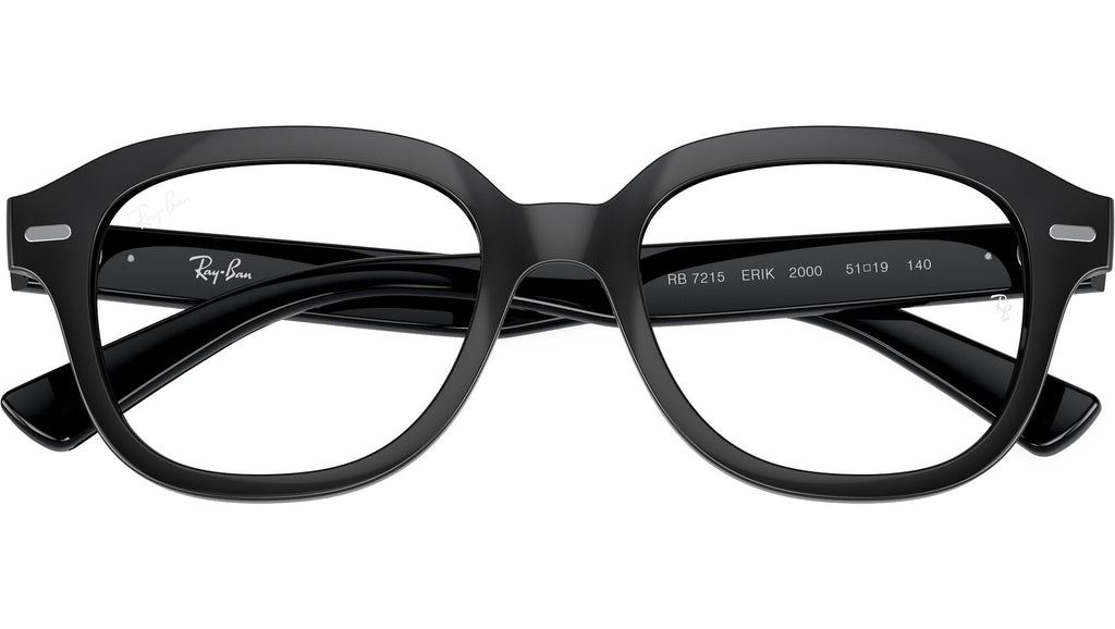 Occhiali da vista Ray-Ban Erik RB7215 2000 unisex con montatura squadrata in propionato nero e lenti demo. Vestibilità a ponte alto. Linea: Evolution. Codice modello: 0RX7215. Codice colore: 2000. Rivenditore autorizzato Ray-Ban online. Gli occhiali vengono consegnati con custodia e accessori originali e sono coperti dalla garanzia ufficiale di 12 mesi del produttore.