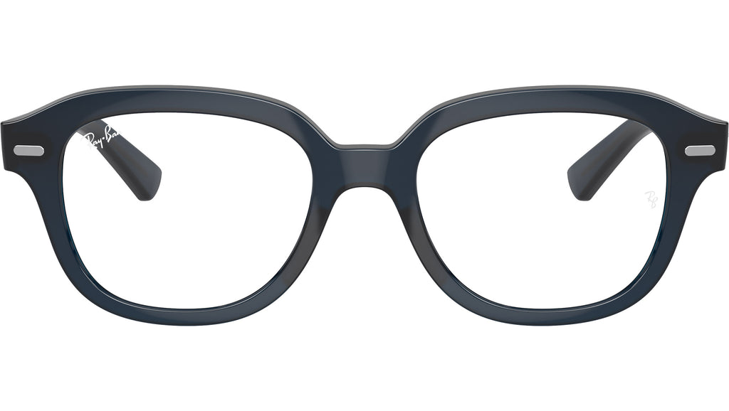 Occhiali da vista Ray-Ban Erik RB7215 8256 unisex con montatura squadrata in propionato blu scuro opalino e lenti demo. Vestibilità a ponte alto. Linea: Evolution. Codice modello: 0RX7215. Codice colore: 8256. Rivenditore autorizzato Ray-Ban online. Gli occhiali vengono consegnati con custodia e accessori originali e sono coperti dalla garanzia ufficiale di 12 mesi del produttore.
