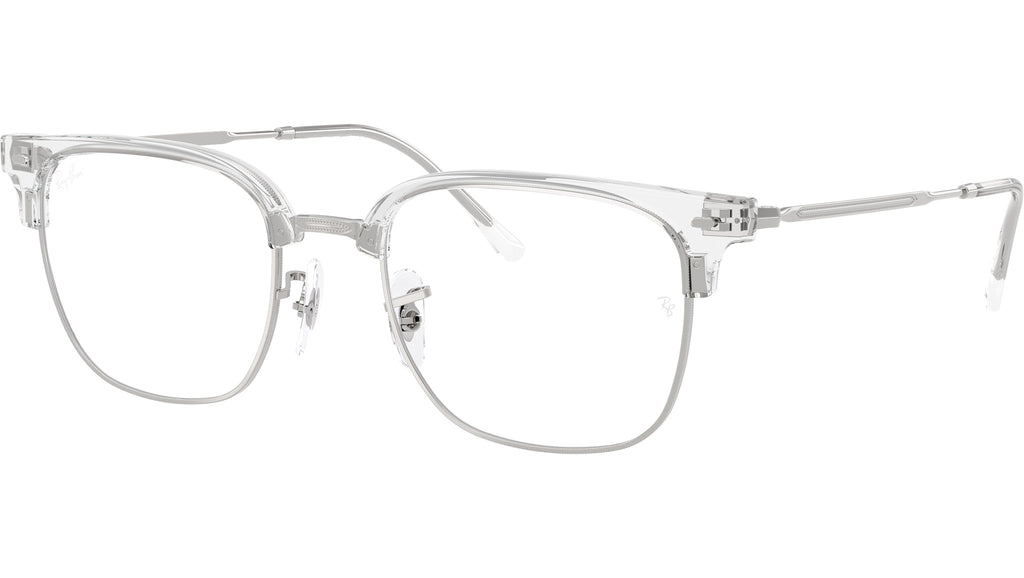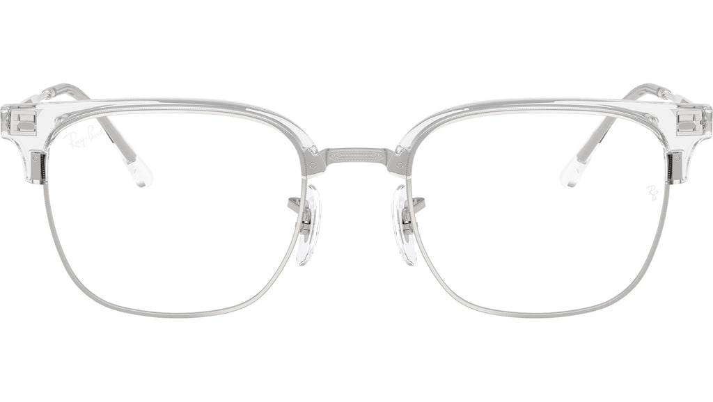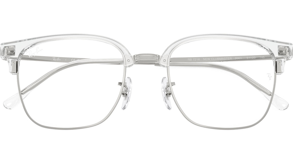 Occhiali da vista Ray-Ban New Clubmaster RB7216 2001 unisex con montatura squadrata in propionato trasparente su argento e lenti demo. Naselli regolabili. Linea: Evolution. Codice modello: 0RX7216. Codice colore: 2001. Rivenditore autorizzato Ray-Ban online. Gli occhiali vengono consegnati con custodia e accessori originali e sono coperti dalla garanzia ufficiale di 12 mesi del produttore.
