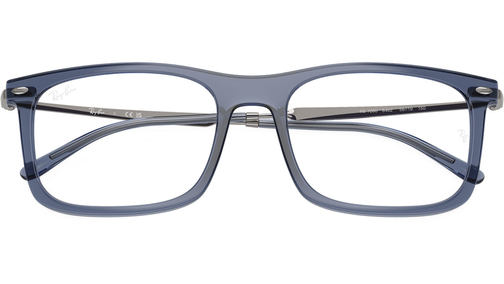 Occhiali da vista Ray-Ban RB7260 Optics RB7260 8462 unisex con montatura rettangolare in nylon blu trasparente e lenti demo. Vestibilità a ponte alto. Linea: Essentials. Codice modello: 0RX7260. Codice colore: 8462. Rivenditore autorizzato Ray-Ban online. Gli occhiali vengono consegnati con custodia e accessori originali e sono coperti dalla garanzia ufficiale di 12 mesi del produttore.