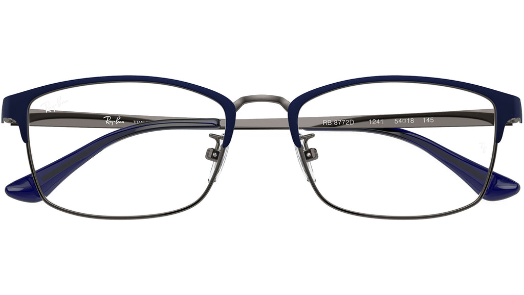 Occhiali da vista Ray-Ban RB8772D Optics RB8772D 1241 unisex con montatura d-frame in titanio blu scuro su canna di fucile e lenti demo. Vestibilità a ponte basso. Linea: Performance. Codice modello: 0RX8772D. Codice colore: 1241. Rivenditore autorizzato Ray-Ban online. Gli occhiali vengono consegnati con custodia e accessori originali e sono coperti dalla garanzia ufficiale di 12 mesi del produttore.