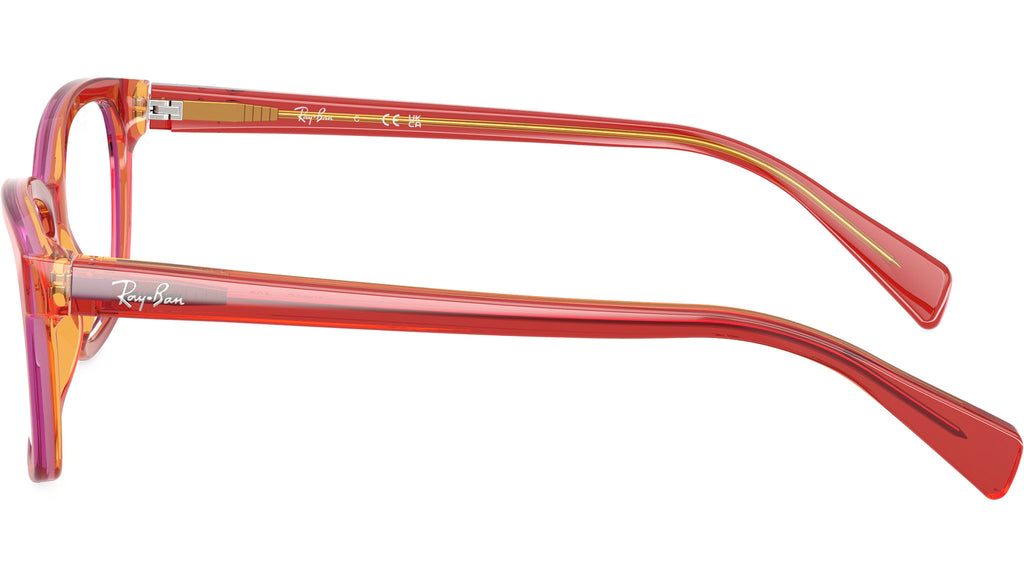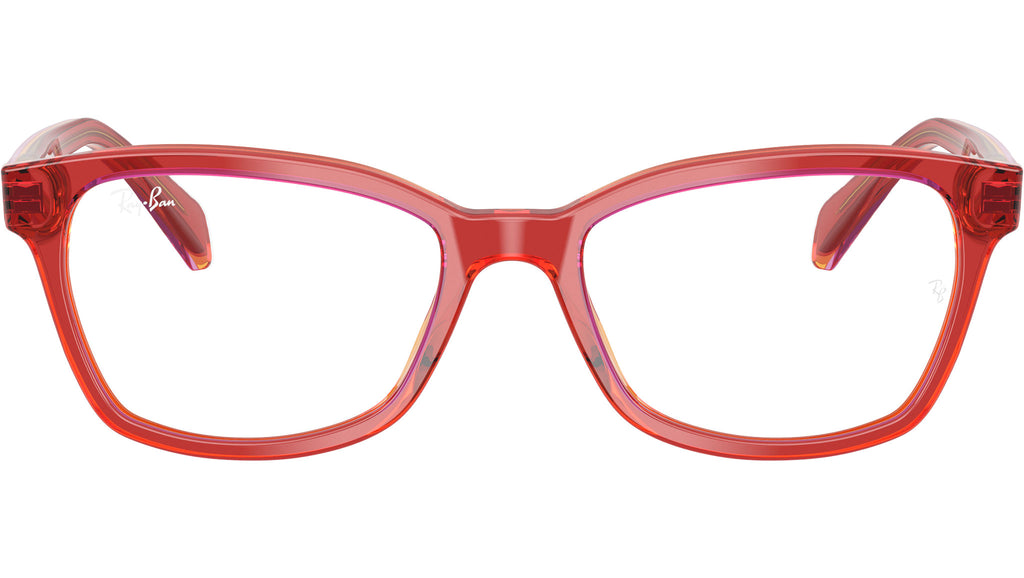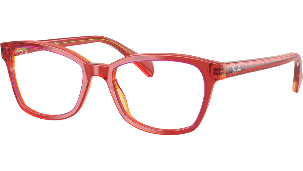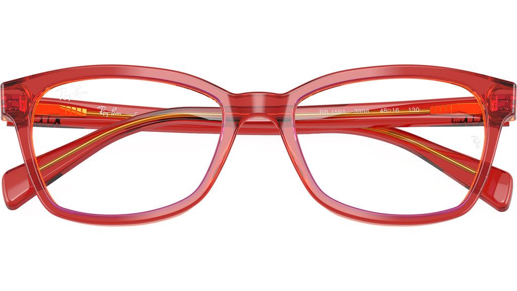 Occhiali da vista Ray-Ban Junior RY1591 3998 donna con montatura squadrata in acetato rosso e giallo trasparenti e lenti demo. Vestibilità a ponte alto. Linea: Kids Icons. Codice modello: 0RY1591. Codice colore: 3998. Rivenditore autorizzato Ray-Ban online. Gli occhiali vengono consegnati con custodia e accessori originali e sono coperti dalla garanzia ufficiale di 12 mesi del produttore.