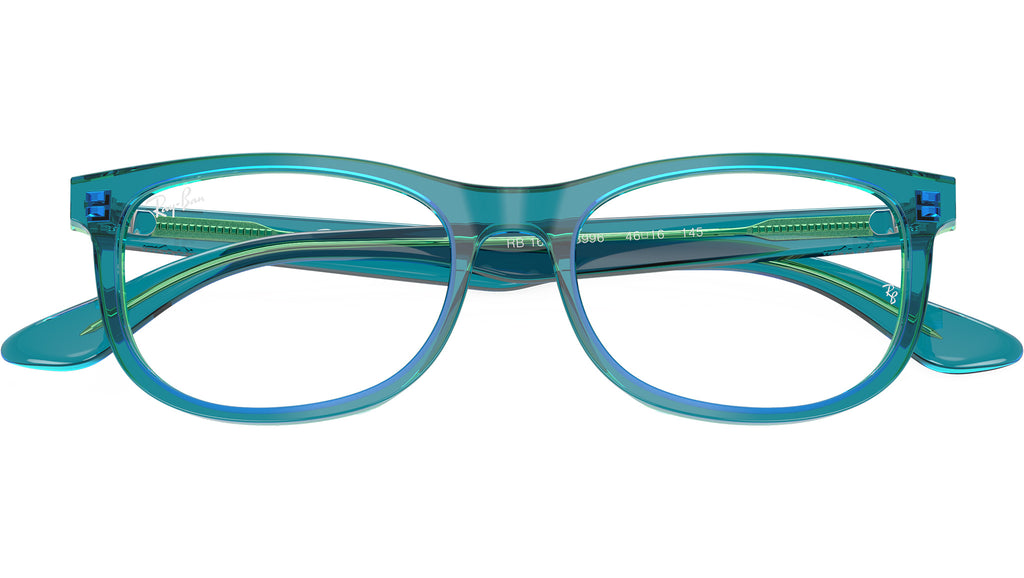 Occhiali da vista Ray-Ban Junior RY1642 3996 unisex con montatura d-frame in acetato blu e verde trasparenti e lenti demo. Vestibilità a ponte alto. Linea: Kids Icons. Codice modello: 0RY1642. Codice colore: 3996. Rivenditore autorizzato Ray-Ban online. Gli occhiali vengono consegnati con custodia e accessori originali e sono coperti dalla garanzia ufficiale di 12 mesi del produttore.