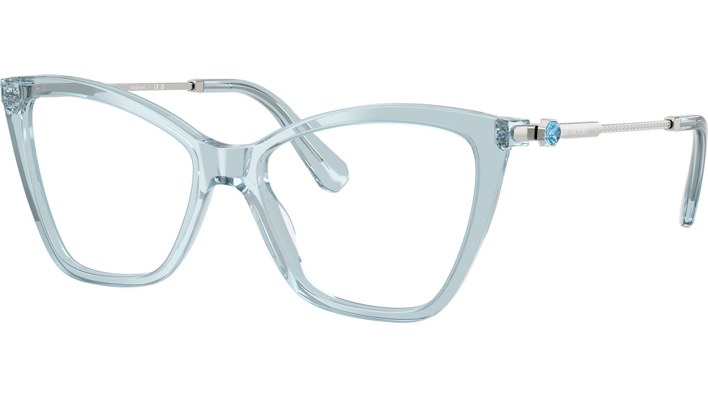 Occhiali da vista Swarovski SK2051 1065 donna, con montatura cat eye in acetato color azzurro trasparente e lenti demo. Vestibilità a ponte alto. Linea: Science of Facets. Codice modello: SK2051. Codice colore: 1065. Rivenditore autorizzato Swarovski Eyewear online. Ogni prodotto Swarovski viene consegnato con astuccio originale e accessori ed è coperto da garanzia del produttore di 12 mesi.