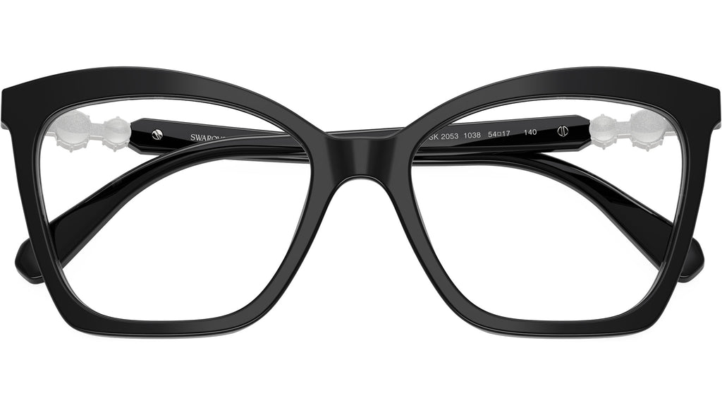 Occhiali da vista Swarovski SK2053 1038 donna, con montatura cat eye in acetato color nero e lenti demo. Vestibilità a ponte alto. Linea: Science of Elegance. Codice modello: SK2053. Codice colore: 1038. Rivenditore autorizzato Swarovski Eyewear online. Ogni prodotto Swarovski viene consegnato con astuccio originale e accessori ed è coperto da garanzia del produttore di 12 mesi.