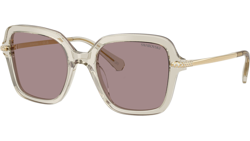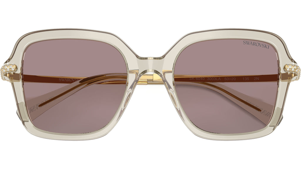 Occhiali da sole Swarovski SK6040 3003LA donna, con montatura geometrica in acetato color beige trasparente e lenti viola in poliammide. Vestibilità a ponte alto. Linea: Science of Industry. Codice modello: SK6040. Codice colore: 3003LA. Rivenditore autorizzato Swarovski Eyewear online. Ogni prodotto Swarovski viene consegnato con astuccio originale e accessori ed è coperto da garanzia del produttore di 12 mesi.