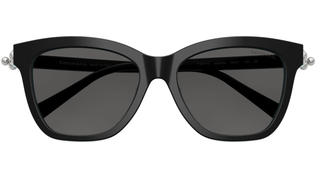 Occhiali da sole Tiffany donna modello TF4241D 8055S4 con montatura squadrata in acetato nero su blu Tiffany e lenti in bio poliammide grigio scuro base 2. Vestibilità a ponte basso. Linea: Icons. Codice Brand: 0TF4241D. Codice colore: 8055S4. Rivenditore autorizzato online Tiffany Eyewear. Ogni prodotto Tiffany viene consegnato con astuccio originale e accessori ed è coperto da garanzia del produttore di 12 mesi.