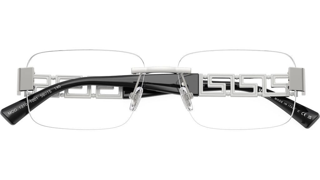 Montatura per occhiali da vista Versace uomo modello VE1310 1001 con montatura d-frame in metallo argento e lenti demo base 4. Naselli regolabili. Linea: Iconic. Codice Brand: 0VE1310. Codice colore: 1001. Rivenditore autorizzato online Versace Eyewear. Ogni prodotto Versace viene consegnato con astuccio originale e accessori ed è coperto da garanzia del produttore di 12 mesi.